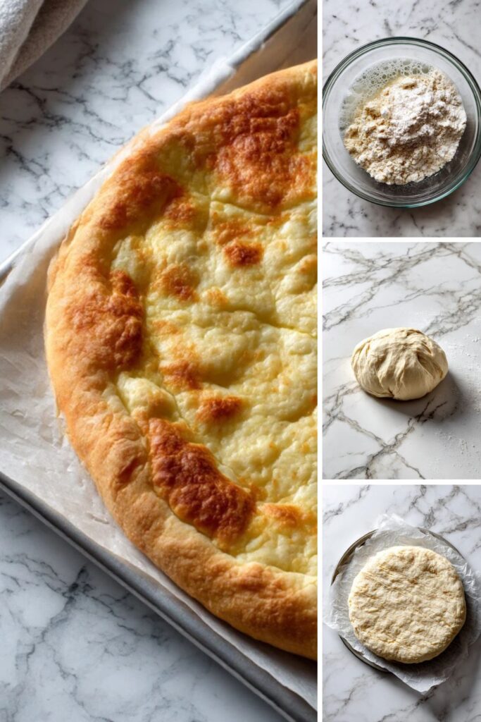 - Prepare the dough: Mix warm water and yeast. Blend flour, salt, and oil in a food processor, then add yeast mixture until dough forms. Knead briefly and let rise for 1 hour.